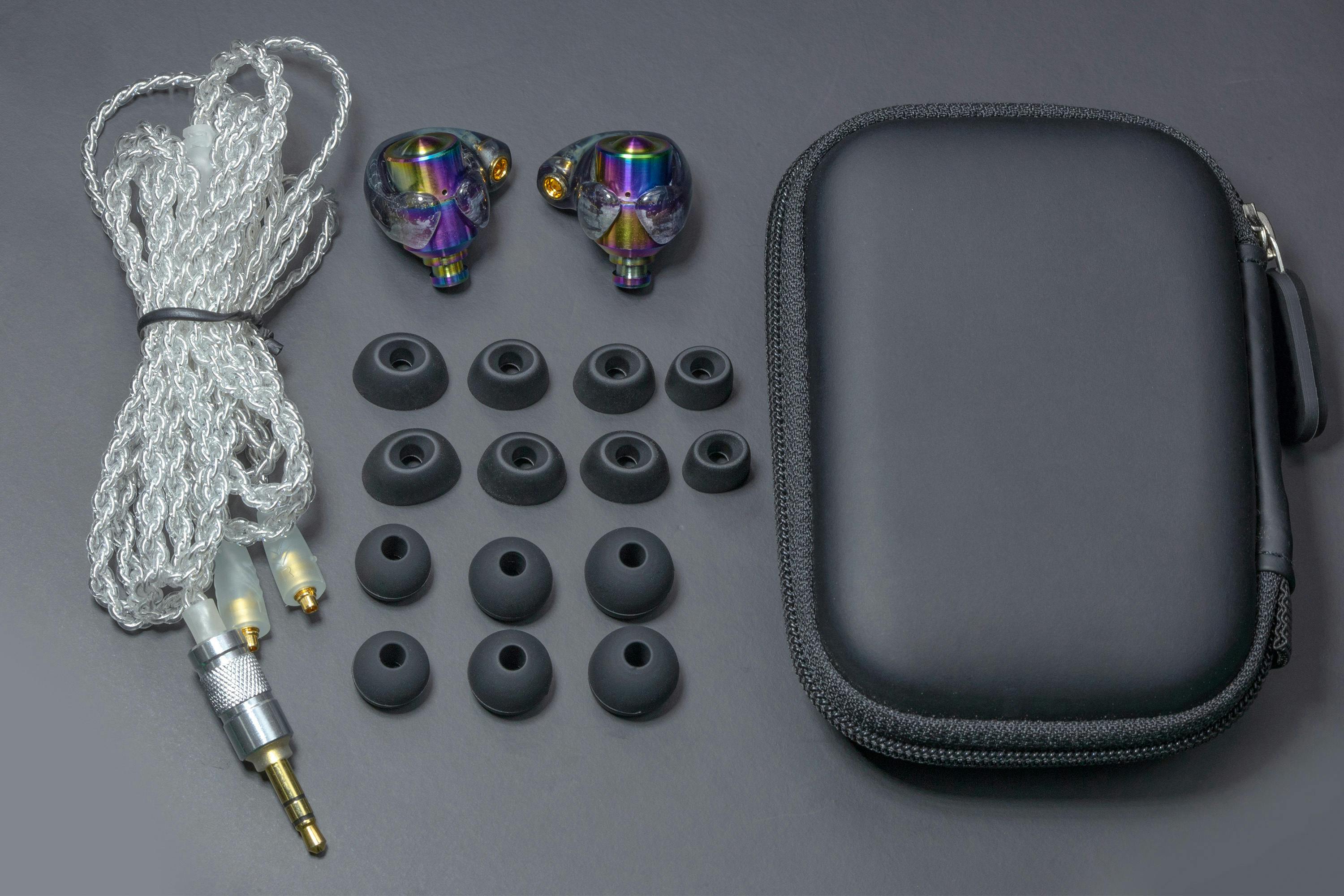 パッケージ内容:イヤホン本体、3.5mmジャック - MMCXケーブル(1.4m)、イヤーピース:ADV. Eartune Fidelity U×4サイズ+シリコンイヤーピース×3サイズ、専用ポーチ